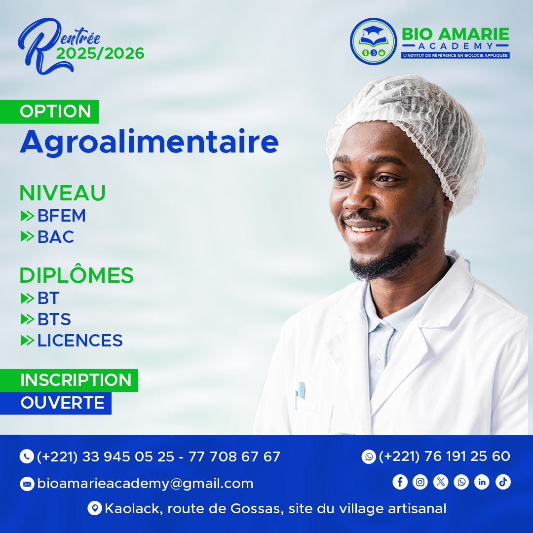 Du Lycée Scientifique, une première à Kaolack, aux programmes BTS et BT en Analyse Biologique, Diététique et Agroalimentaire, nos formations allient excellence académique, pratique professionnelle et innovation pédagogique.